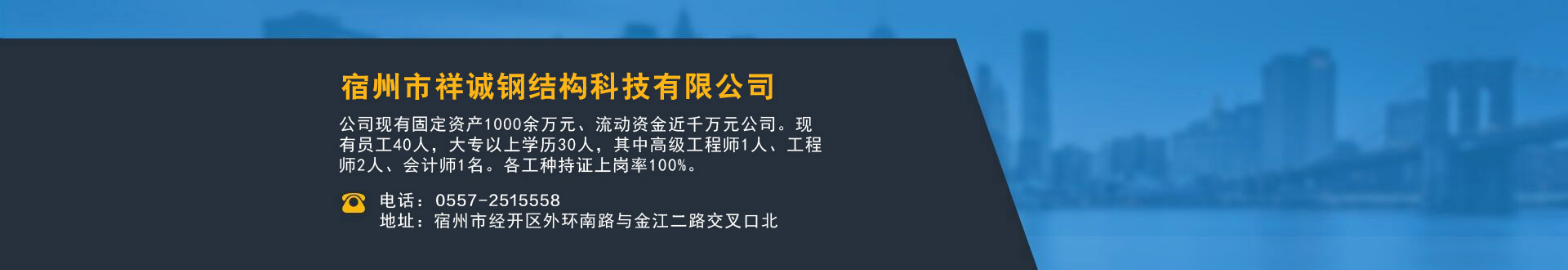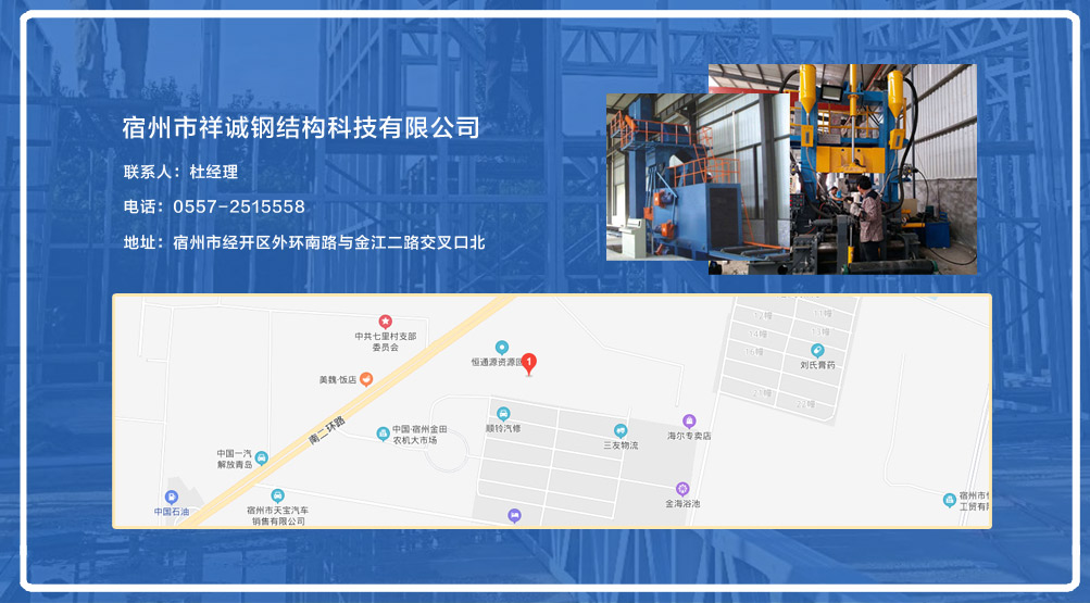 宿州市祥誠鋼結(jié)構(gòu)科技有限公司位于宿州市經(jīng)開區(qū)外環(huán)南路與金江二路交叉口北,公司是一家以建設(shè)產(chǎn)業(yè)化為目標(biāo),匯集大型鋼結(jié)構(gòu)廠房、彩鋼活動房設(shè)計、制作、安裝施工一條龍服務(wù)的知名鋼結(jié)構(gòu)公司。公司現(xiàn)有固定資產(chǎn)1000余萬元、流動資金近千萬元公司。現(xiàn)有員工40人,大專以上學(xué)歷30人,其中高級工程師1人、工程師2人、會計師1名。各工種持證上崗率100%。高效化的年青團隊為公司帶來了蓬勃發(fā)展的動力,全體員工以務(wù)實的態(tài)度,拼搏的精神,創(chuàng)造著企業(yè)的每一天。      公司組織結(jié)構(gòu)嚴(yán)格按現(xiàn)代企業(yè)制度設(shè)計,管理機構(gòu)設(shè)置合理,制度完善,各部門分工明確...